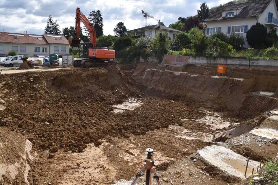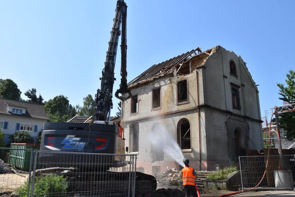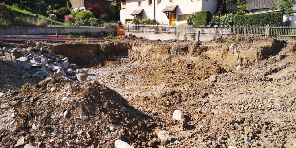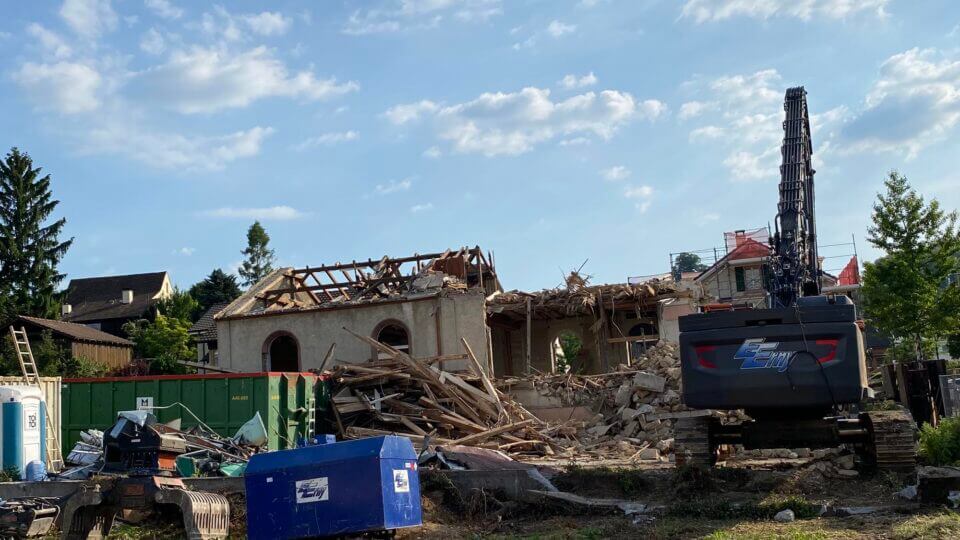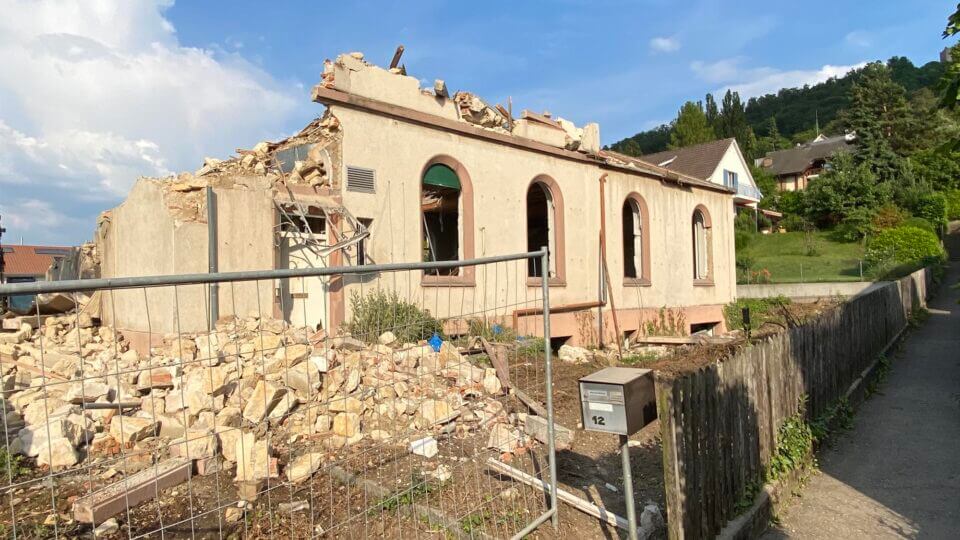 Der 1. Juni 2023 war ein geschichtsträchtiger Tag und markierte einen historischen Moment: Nach über 100 Jahren an derselben Stelle wurde das Chrischona-Gebäude endgültig abgerissen. Der Bagger fuhr früh am Morgen auf und nahm das Haus Stück für Stück auseinander. Die verschiedenen Materialien mussten sorgfältig getrennt und entsorgt werden. Deshalb dauerte der Rückbau mehrere Wochen. Der Humus auf dem ganzen Gelände wurde abgetragen und auf der ehemaligen Wiese wurde für die Lager und die Arbeitsfläche für den Bau eine Kiesschicht aufgeschüttet. Inzwischen wurden die Sporen für die Hangsicherung erstellt. Das sind tiefe Löcher, welche mit Beton gefüllt werden. Ein Geologe hat den Baumeister dazu beraten. Als nächster Schritt steht im August der Aushub bevor, um dann mit der Armierung der Bodenplatte zu beginnen. Am 27. August ist vor dem Gottesdienst eine kleine Feier für die Grundsteinlegung geplant.
